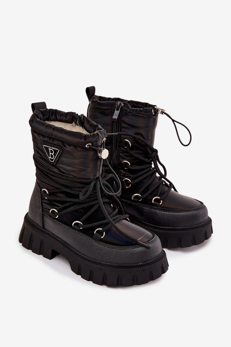 Dětské sněhules jsou ideální obuví na zimní dny, navržené s ohledem na teplo a pohodlí nejmenších. Vyrobené z odolného materiálu odolného větru a mrazu, účinně chrání nohy před chladem a vlhkostí. Model se zapíná na zip, což usnadňuje obouvání, a dodatečné šněrování a stažení na horní části boty umožňují přizpůsobit obuv noze, zabránit vniknutí sněhu dovnitř. Vnitřek je vyplněn tlustým, měkkým kožíškem, který zajišťuje maximální teplo a pohodlí i při dlouhých zimních hrách venku. Jsou to praktické a teplé sněhule, které se budou hodit za každých zimních podmínek. Při výběru velikosti prosíme řídit se tabulkou velikostí. Při výběru velikosti se řiďte tabulkou velikostí.