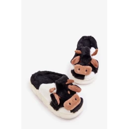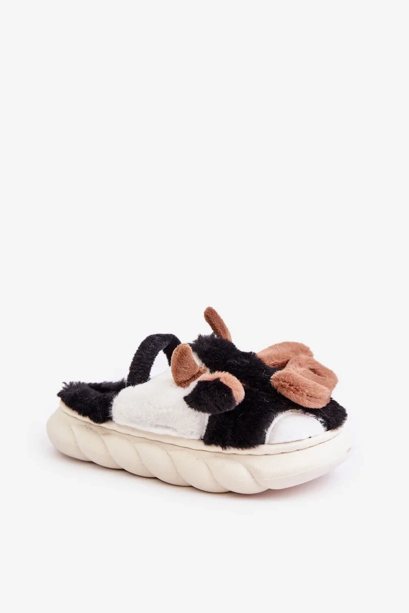 Dětské Chlupaté Pantofle S Motivem Krávy Černé Tamorrin