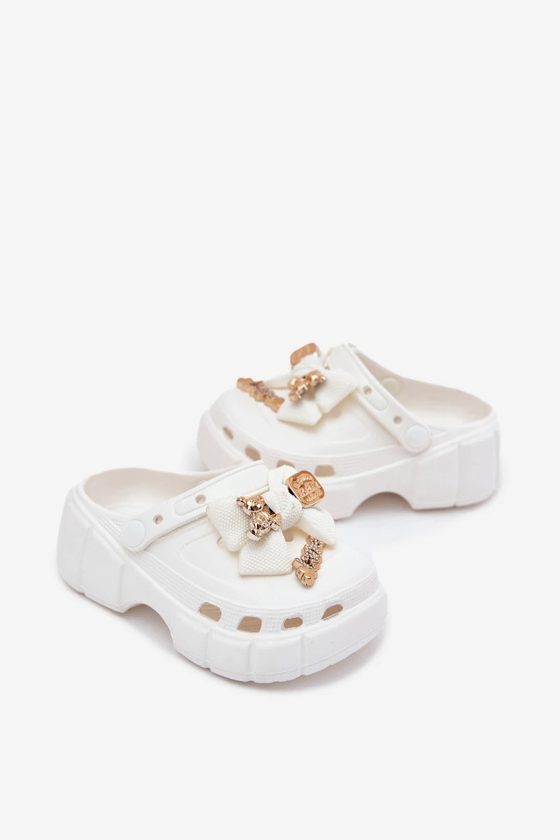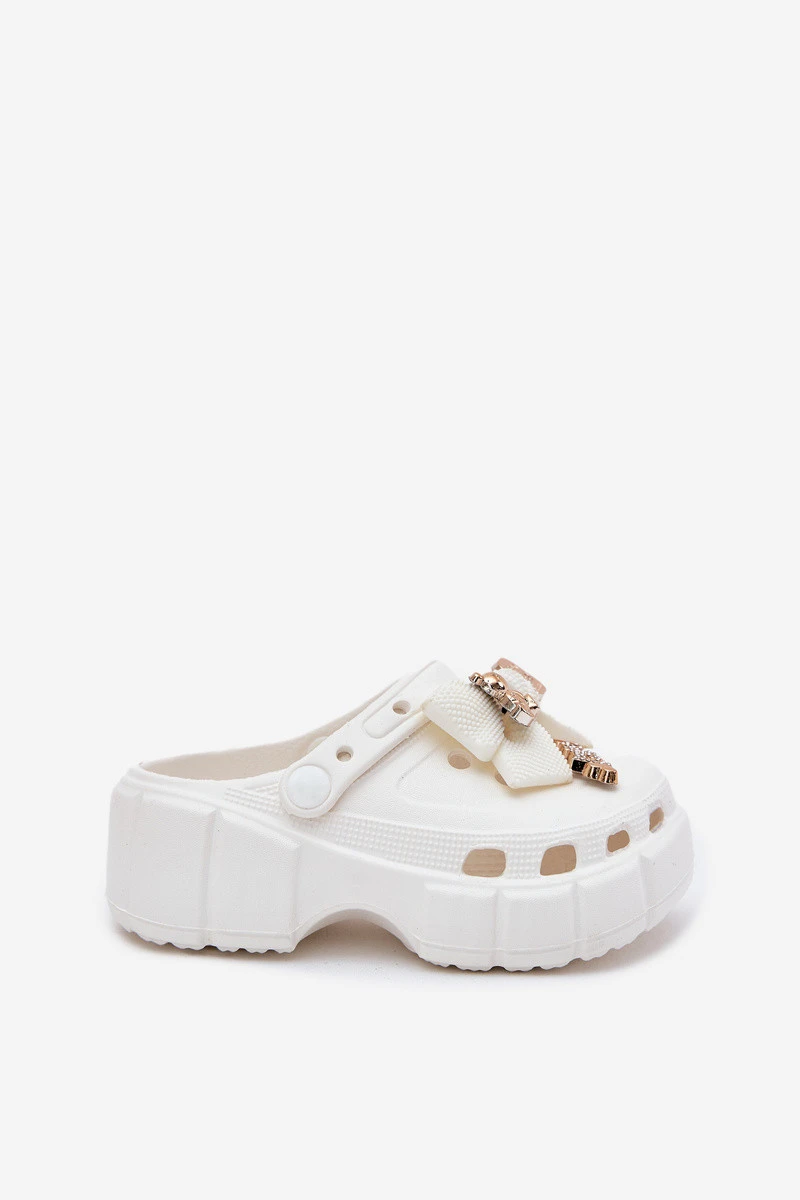 Dětské Dívčí Pantofle Z S Mašlí A Ozdobami Bílé model 21700414 - Boto
