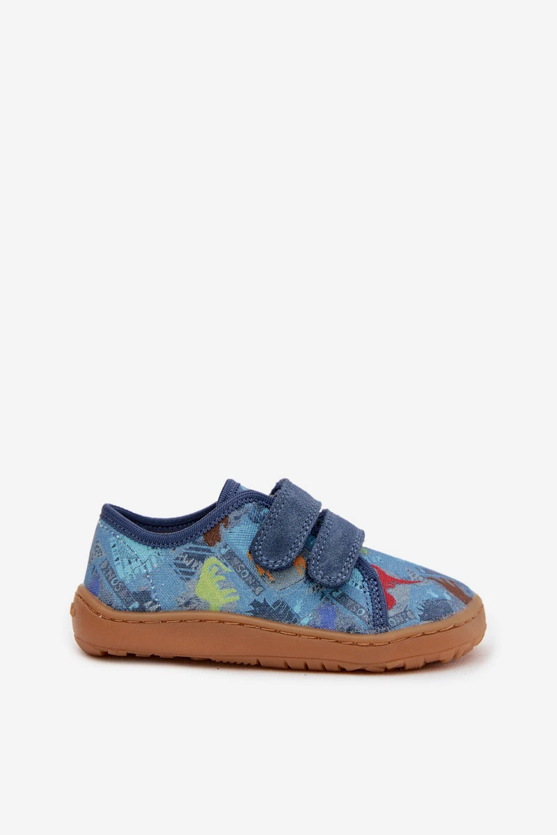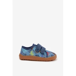 Dětské domácí pantofle Barefoot Dinosauři Froddo Canvas G1700440-15 Modré