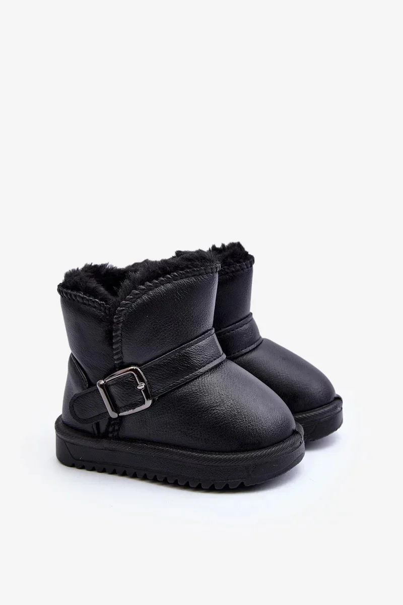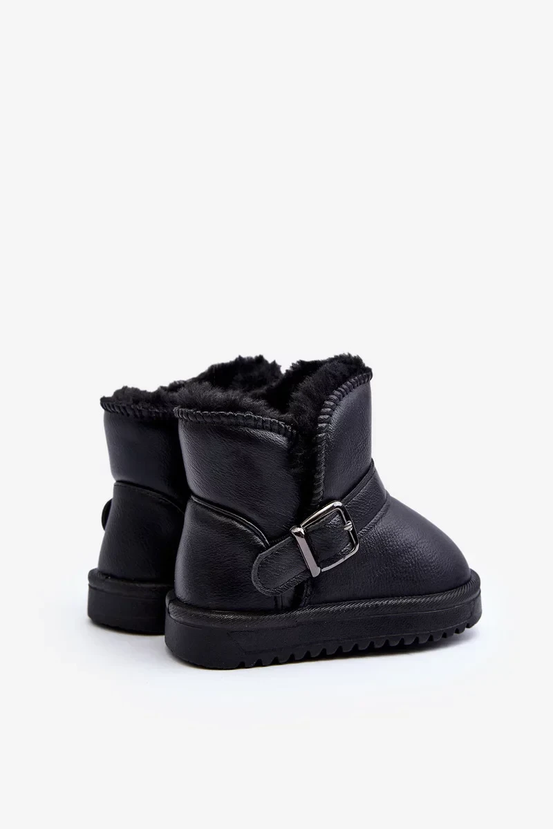 Dětské eko kožené sněhule s páskem, černá Orinor