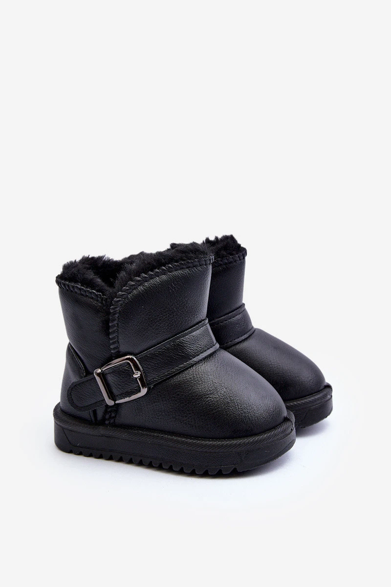 Dětské ekologické kožené sněhule s popruhem černé Orinor
