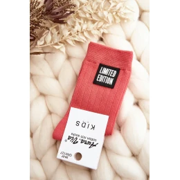 Hladké dětské ponožky z bavlny. Mají módní nášivku s nápisem. Ideální pro chladné zimní dny!