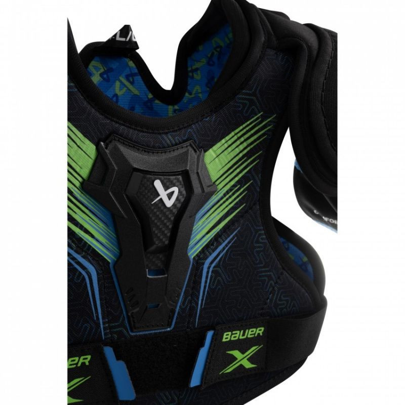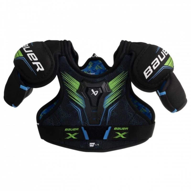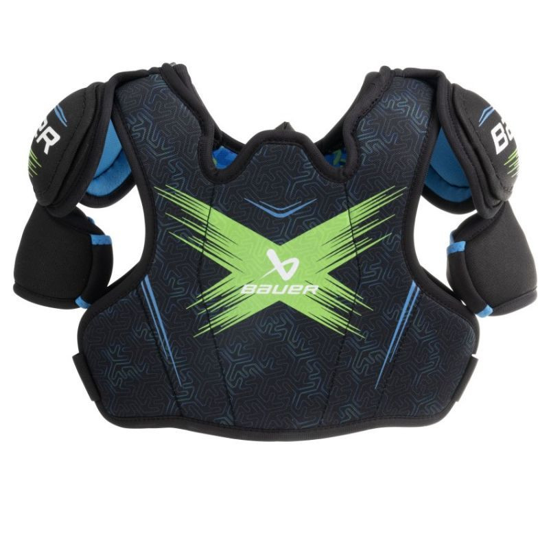 Naramienniki hokejowe Bauer X '24 Dzieciece Zostały zaprojektowane z myślą o graczach w sporcie amatorskim, którzy cenią sobie zarówno ochronę, jak i zwinność na lodzie. Dzięki unowocześnionemu mostkowi i zaawansowanej konstrukcji, te naramienniki zapewniają optymalną ochronę, nie ograniczając jednocześnie swobody ruchów. Głowne cechy: Formowany mostek: Został zaprojektowany tak, aby chronić przed uderzeniami, zapewniając jednocześnie zwinność i lekkość. Idealny dla graczy, którzy potrzebują solidnej ochrony bez rezygnacji z mobilności. Pianka FlexCell: Wysokiej jakości pianka FlexCell zapewnia dodatkowy komfort i ochronę, dopasowując się do naturalnych ruchów ciała gracza. Regulowany biceps: Wyposażony w wygodny system regulacji, umożliwia łatwe dopasowanie rękawa do indywidualnych potrzeb gracza, zapewniając idealne dopasowanie i ochronę bicepsa. Sublimowana podstawa i wyściółka: Gwarantuje trwałość i estetyczny wygląd, a jednocześnie oferuje komfort po