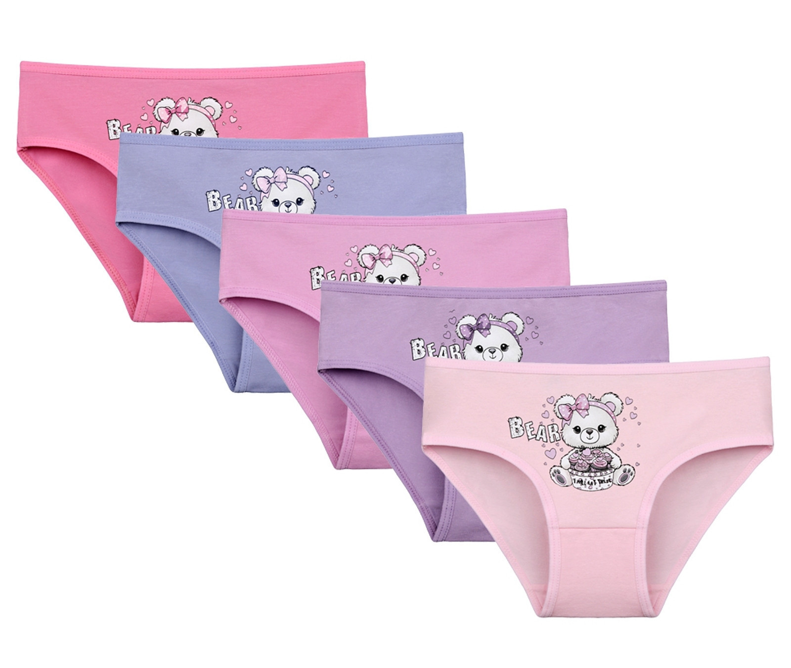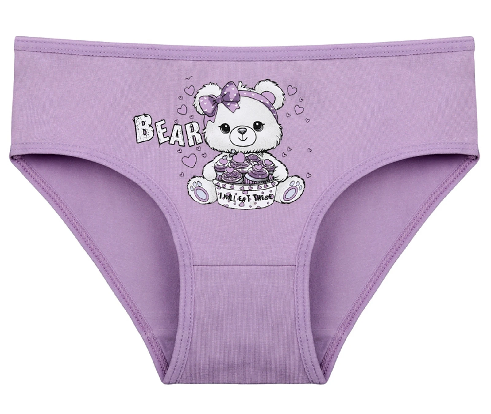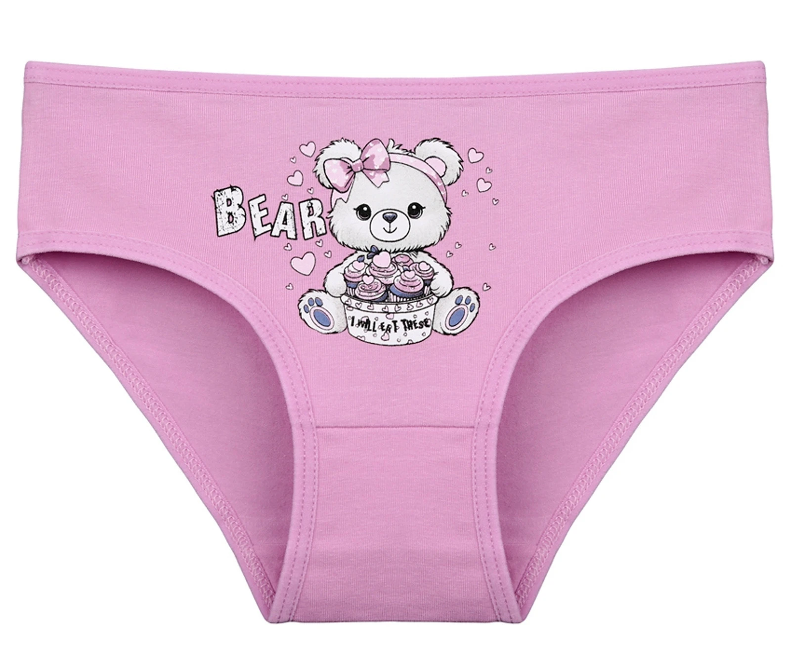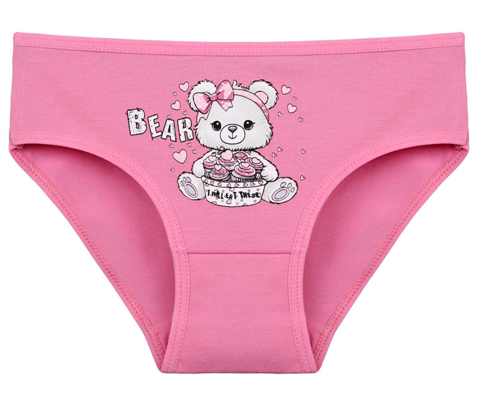 Dětské bavlněné kalhotky Bear. Dětské kalhotky klasického střihu jsou pohodlné a slušivé, zdobí je obrázek medvídka. Obzvláště oceníte materiálové složení - 95% bavlna a 5% elasten. Použitý materiál je příjemný a poddajný na dotek.