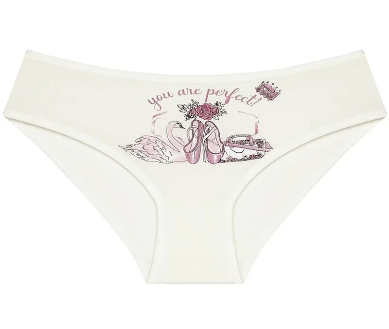 Dětské bavlněné kalhotky Denisa. Dětské kalhotky klasického střihu s obrázkem a nápisem 'You are perfect!'. Použitý materiál je jemný a poddajný na dotek.