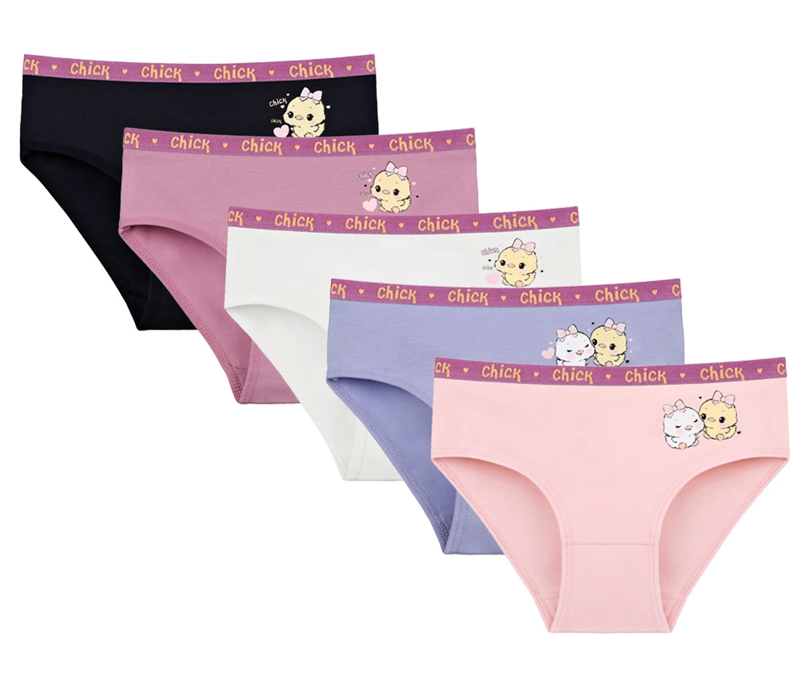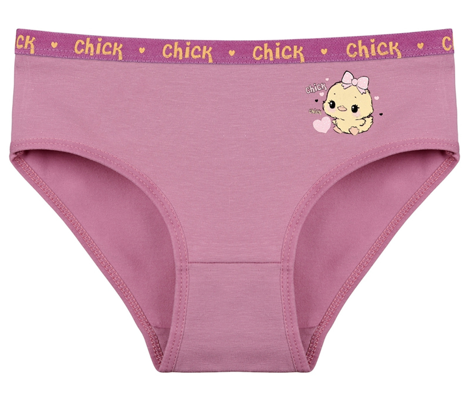 Dětské bavlněné kalhotky Kuře. Dětské kalhotky klasického střihu jsou pohodlné a slušivé, zdobí je obrázek kuřete. Obzvláště oceníte materiálové složení - 95% bavlna a 5% elasten. Použitý materiál je příjemný a poddajný na dotek.