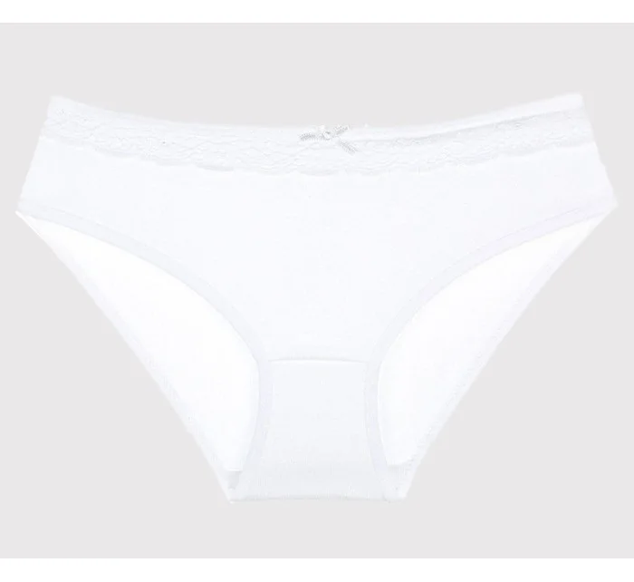 Dětské kalhotky Linda. Klasické dětské kalhotky jsou jednobarevné, u pasu ozdobené jemnou krajkou s mašličkou. Použitý materiál je jemný a poddajný na dotek.
