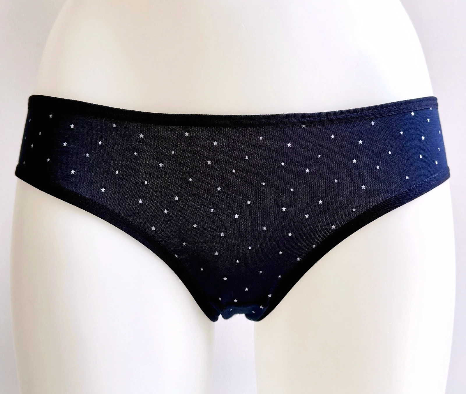 Dětské bavlněné kalhotky Kristýna. Tmavě modré kalhotky klasického střihu jsou pohodlné a slušivé, zdobí je malé hvězdičky. Obzvláště oceníte materiálové složení - 95% bavlna a 5% elasten. Použitý materiál je příjemný a poddajný na dotek.