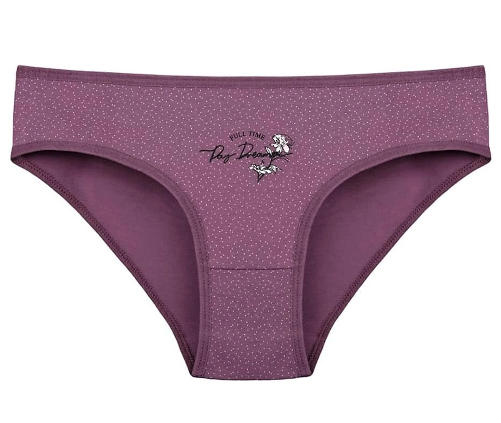 Dětské bavlněné kalhotky Selena. Dětské kalhotky klasického střihu jsou pohodlné a slušivé, zdobí je obrázek květu a drobný nápis. Obzvláště oceníte materiálové složení - 95% bavlna a 5% elasten. Použitý materiál je příjemný a poddajný na dotek.