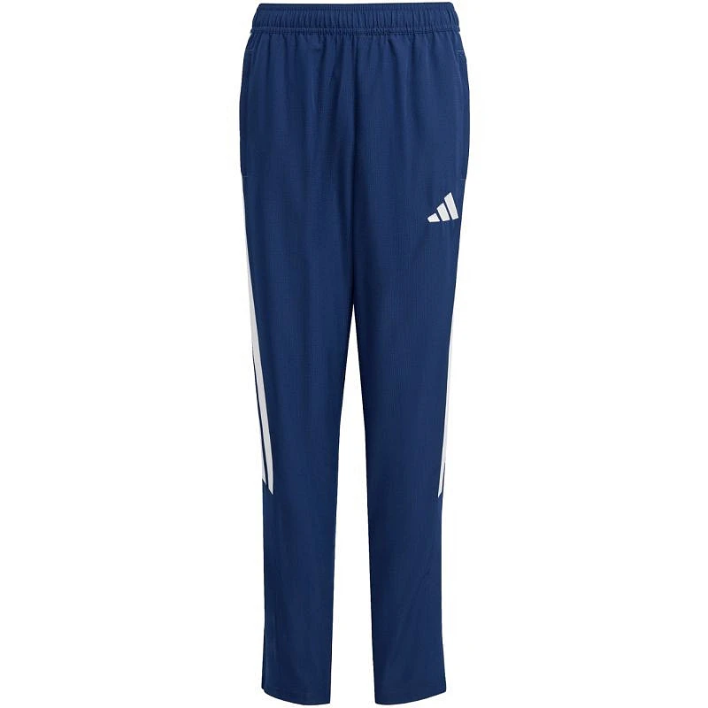 Dětské kalhoty adidas Tiro 26 League Presentation v tmavě modré barvě JZ9052 Dětské kalhoty adidas jsou ideální pro odpočinek mimo fotbalové trávníky. Pravidelný střih. Elastický pas s vnitřní stahovací šňůrkou. Postranní kapsy na zip. Rozparek na nohavicích na zip. Recyklované vlákno z řady Tiro. Tyto kalhoty vám poskytnou pohodlí a sportovní vzhled při zotavování z tréninku. Materiál: 100% recyklovaný polyester.