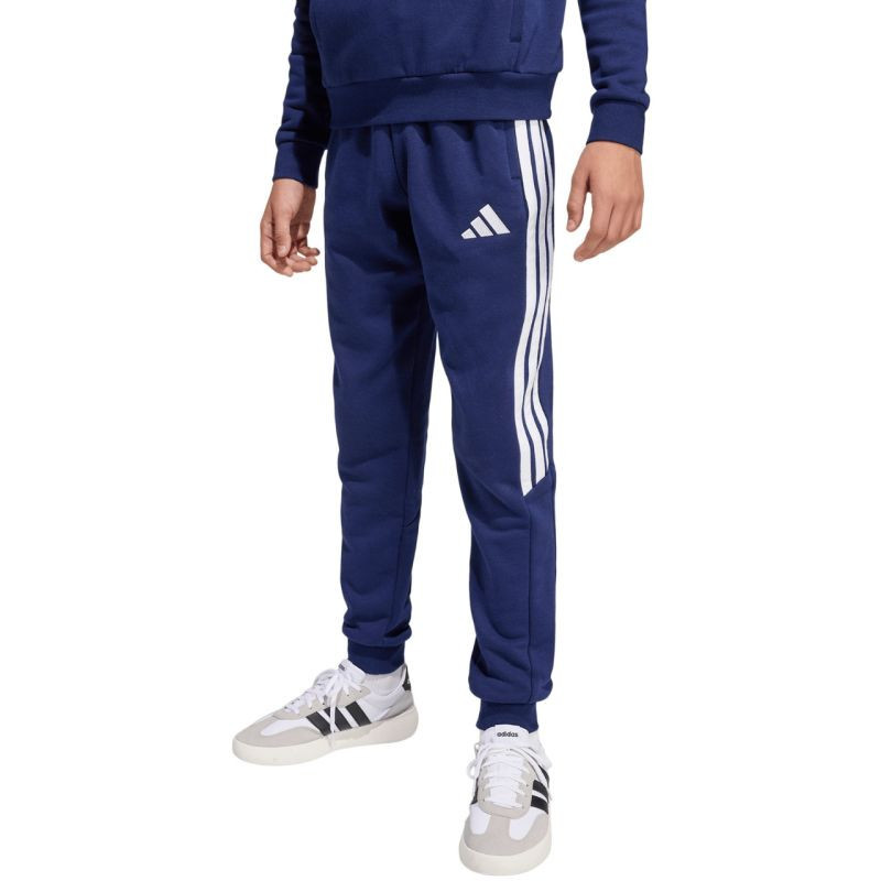Spodnie dla dzieci adidas Tiro 26 League Sweat granatowe JY9673 Spodnie dla dzieci adidas będące częścią linii Tiro sprawdzą się podczas odpoczynku pomiędzy sesjami treningowymi. Połączenie oddychającej bawełny z trwałymi, poliestrowymi włóknami. Regularny krój ze ściągaczowymi wstawkami w dolnej części nogawek. Elastyczna talia z wewnętrznym sznurkiem do regulacji. Zapinane kieszenie boczne. Materiał: 70% bawełna, 30% poliester