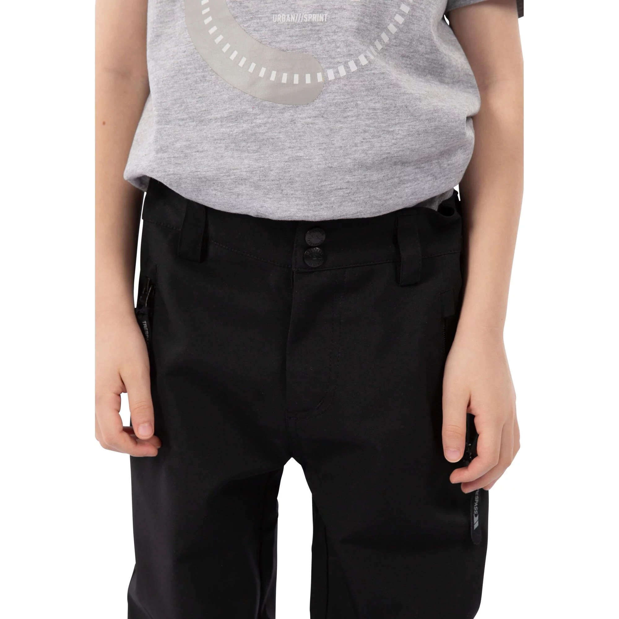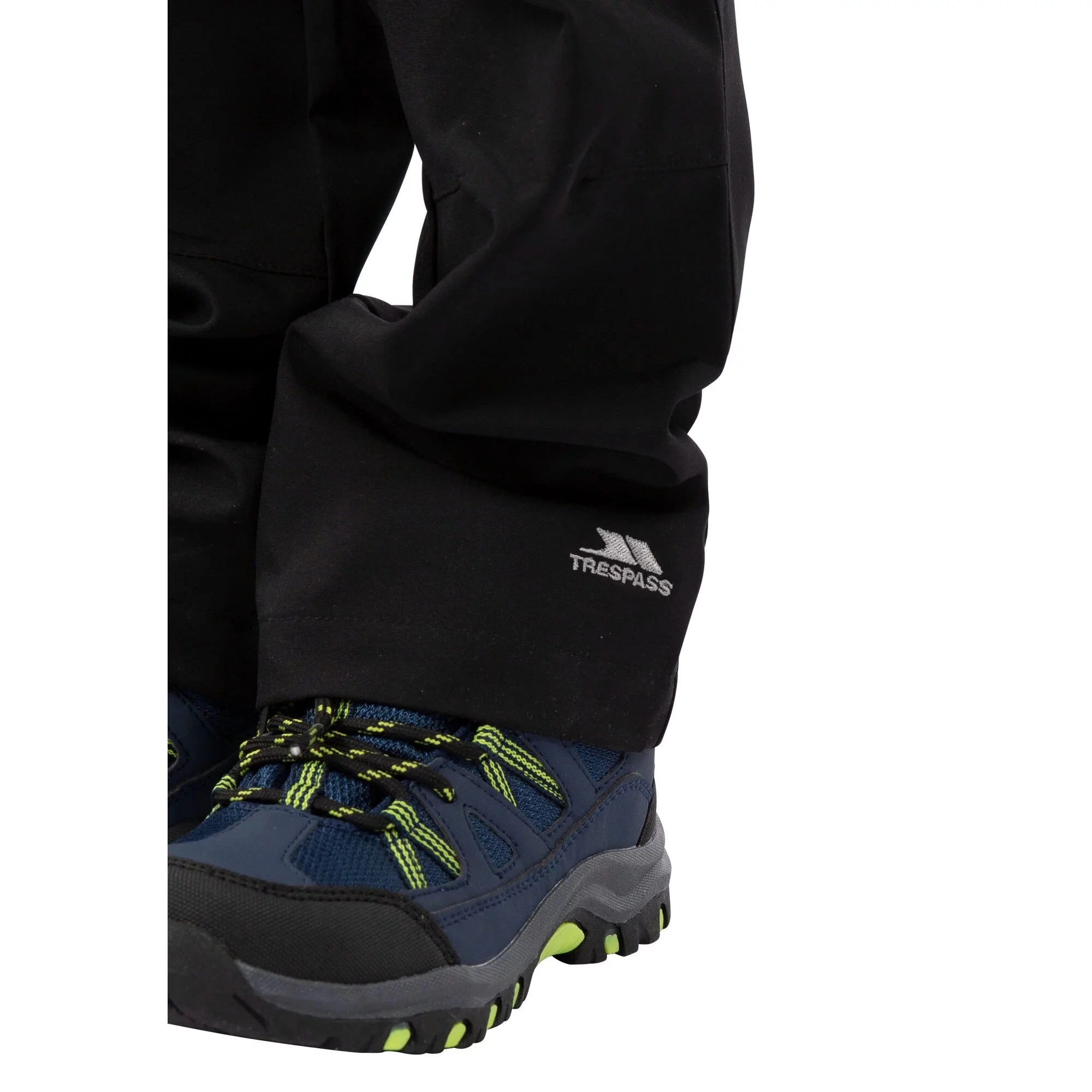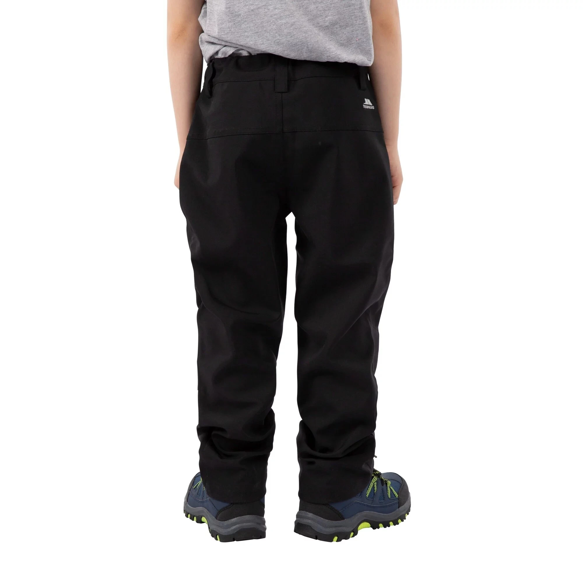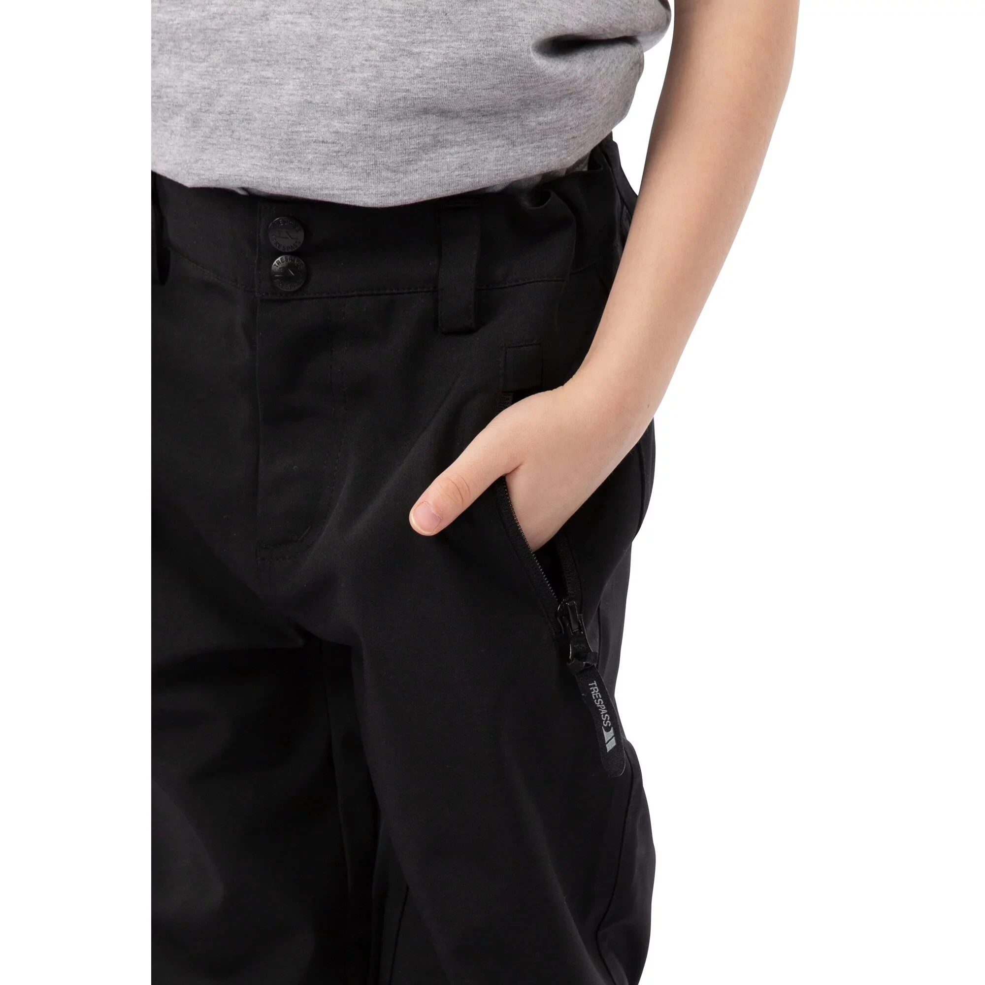 Dětské lehké softshellové kalhoty Trespass jsou větruodolné a nabízejí praktičnost a pohodlí se zapínáním na zip, poutky na opasek a kapsami na zip.