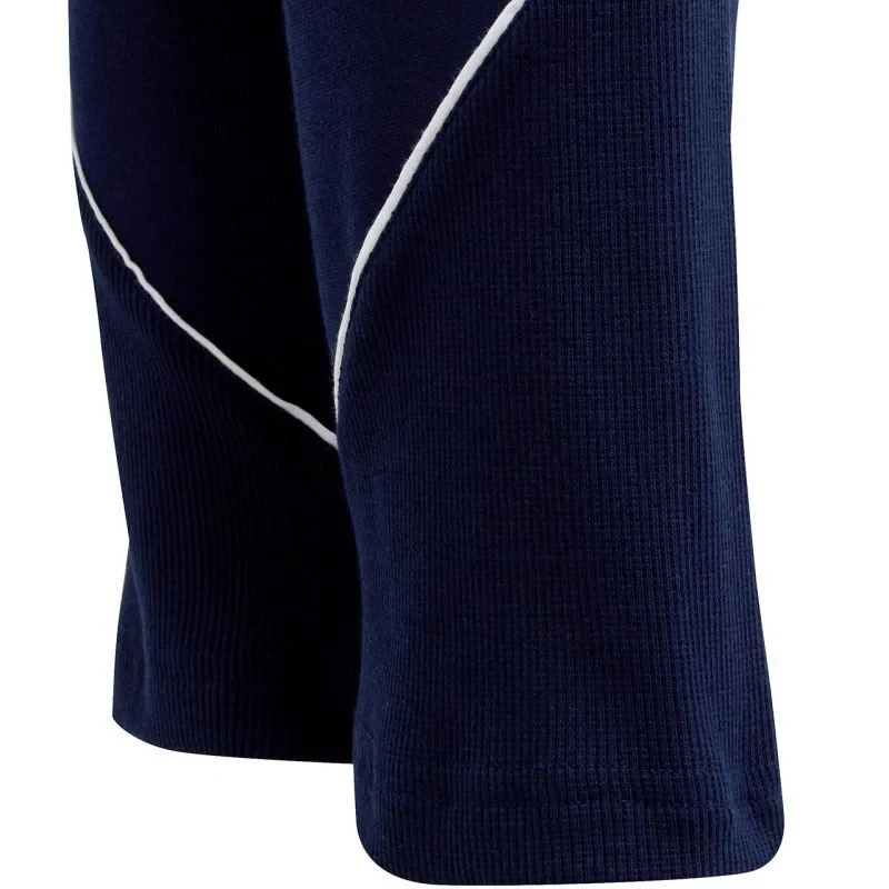 - Pravidelný střih s žebrovanými vsadkami na nohavicích.
