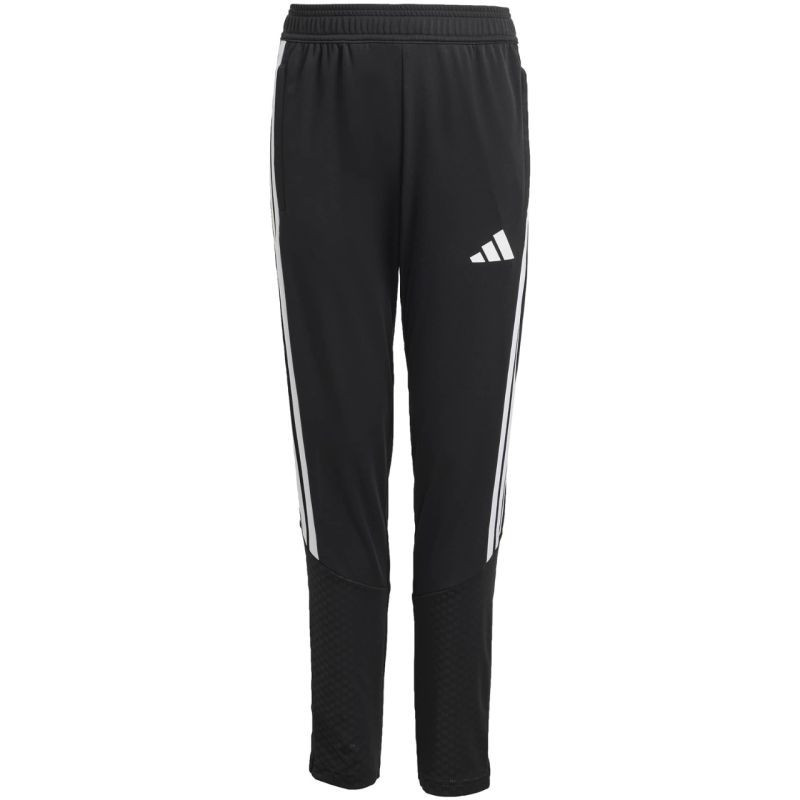 Spodnie dla dzieci adidas Tiro 26 Competition Training czarno-białe KA5133 Spodnie dla dzieci adidas sprawdzą się podczas treningu. Fason z linii Tiro wyprodukowano z szybkoschnących włókien powstałych w procesie recyklingu. Dopasowany krój z elastyczną talią regulowaną sznurkiem. Zapinane kieszenie boczne. Zamki u dołu nogawek. Technologia Formotion pozwala na ruch bez ograniczeń. Materiał: 100% poliester z recyklingu