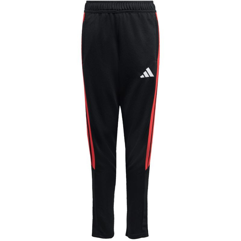 Dětské kalhoty adidas Tiro 26 League černo-červené JY9677 Dětské kalhoty adidas Tiro z fotbalové kolekce Tiro jsou ideální na trénink. Rychleschnoucí úpletová tkanina. Technologie Climacool. Standardní střih. Středně vysoký elastický pas se stahovací šňůrkou. Boční kapsy se zipy. Konce nohavic se zipy. Materiál: 100% recyklovaný polyester.