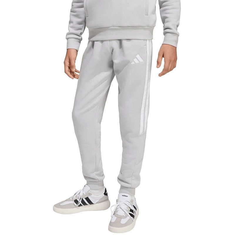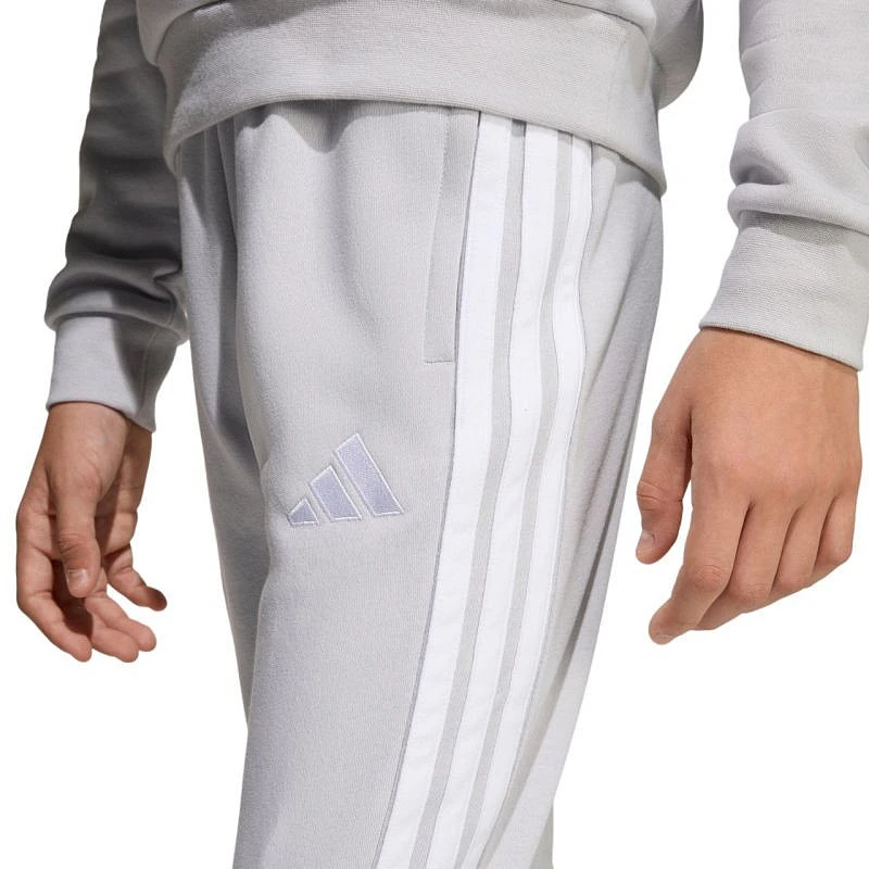 Spodnie dla dzieci adidas Tiro 26 League Sweat szare JY9672 Spodnie dla dzieci adidas będące częścią linii Tiro sprawdzą się podczas odpoczynku pomiędzy sesjami treningowymi. Połączenie oddychającej bawełny z trwałymi, poliestrowymi włóknami. Regularny krój ze ściągaczowymi wstawkami w dolnej części nogawek. Elastyczna talia z wewnętrznym sznurkiem do regulacji. Zapinane kieszenie boczne. Materiał: 70% bawełna, 30% poliester