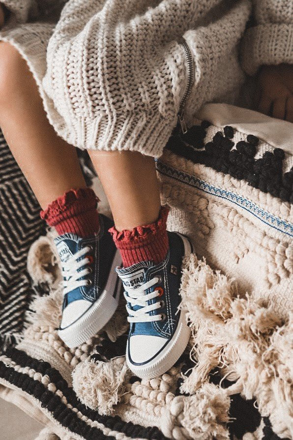 Klasické tenisky od společnosti BIG STAR. Tenisky jsou vyrobeny z vysoce kvalitního materiálu, který je odolný vůči vnějším vlivům. Tenisky dobře padnou do tvaru chodidla a mají funkční protiskluzovou podrážku. Nadčasový design dostupný v mnoha barvách. Nezapomeňte se podívat na celou naši kolekci bot BIG STAR. Velikosti 17–21 mají tři očka na šněrování a velikosti 22–27 mají 4 očka. Při výběru velikosti použijte tabulku velikostí.