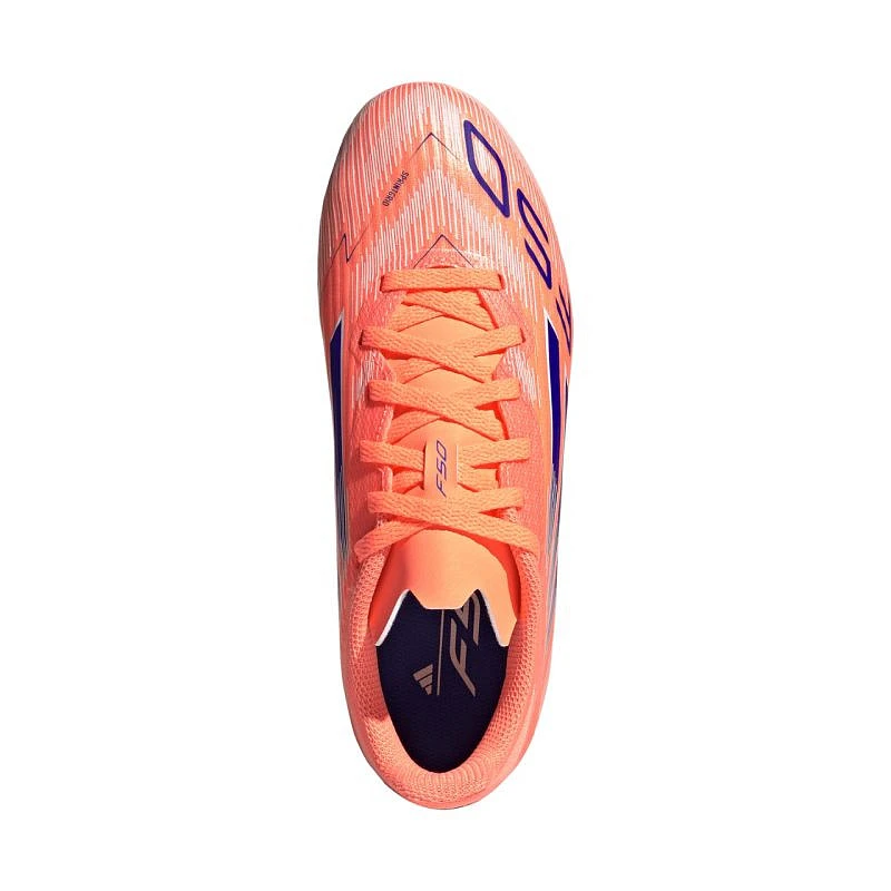 Dětské kopačky adidas F50 League FG/MG JH7746 Poloamatérské kopačky adidas jsou určeny pro děti, které dávají přednost hře na přírodním i umělém trávníku. Tento model pochází z premiérové kolekce Coral Blaze Pack. Silueta se dokonale přizpůsobí anatomickému tvaru chodidla. Svršek z vláknité kůže s potiskem Sprintgrid. Elastická konstrukce jazyka. Klasické šněrování usnadňuje přizpůsobení boty noze. Podešev Sprintplate 360 má hroty pro stabilitu a přilnavost k zemi. Tento výrobek je vyroben nejméně z 20 % z recyklovaných materiálů.