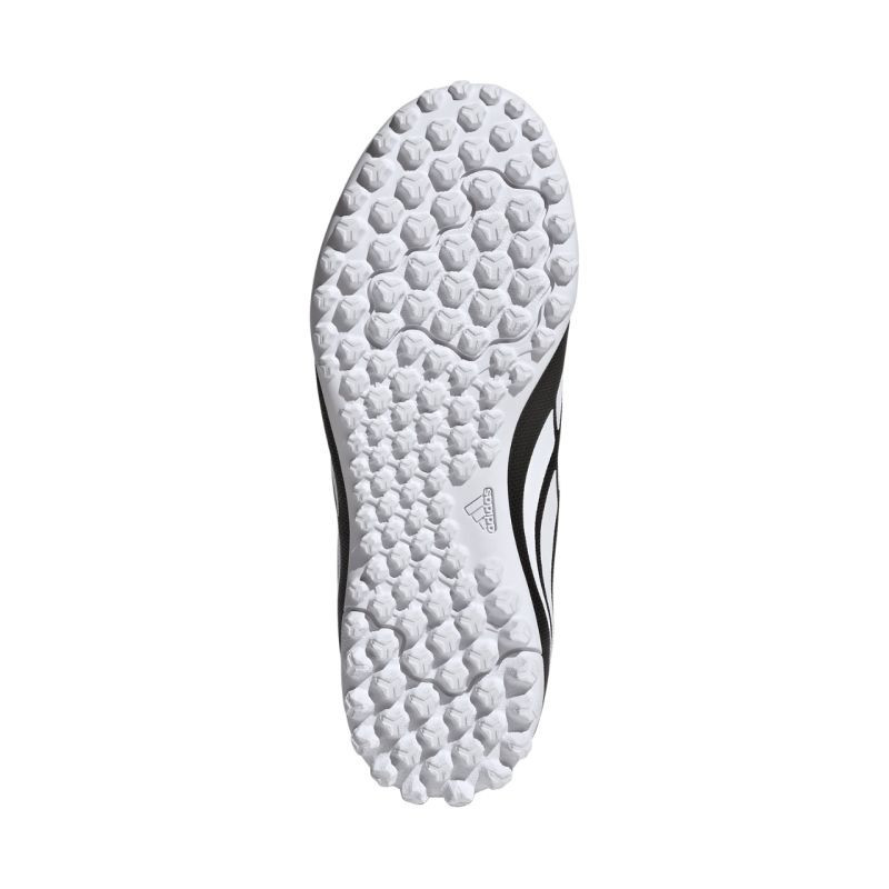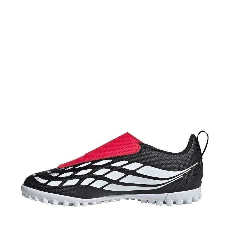 Dětské kopačky adidas Predator Club VEL TF KI8867 Dětské kopačky adidas Predator Junior z kolekce Black Pack na umělý trávník. Syntetický svršek s texturovanou strukturou. Širší přihrádka na prst pro podporu anatomických potřeb rostoucích nohou. Zapínání na suchý zip. Textilní vnitřek. Turfová podrážka pro přilnavost. úroveň: amatérská.