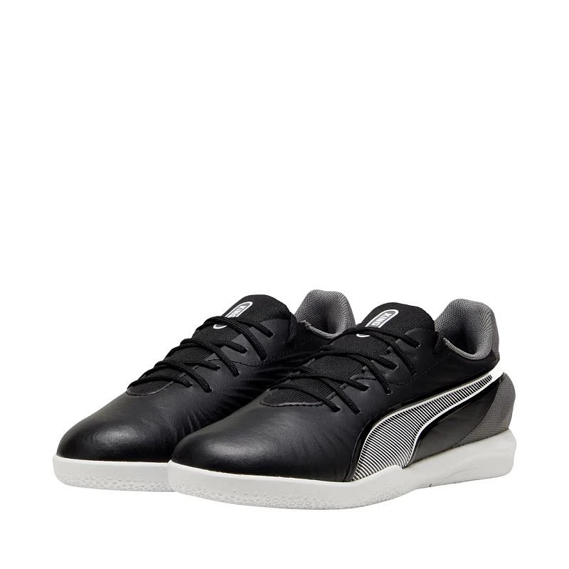 Puma King Match IT 108051 01 Dětské sálové kopačky Puma King poskytují lepší přilnavost a odezvu při tréninku na umělém trávníku. šněrovací konstrukce. svršek z ekologické syntetické kůže. gumová podrážka.