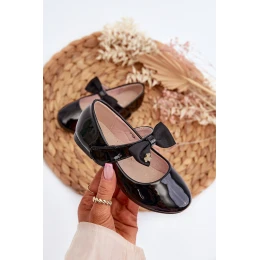 Dětské lakované balerínky s mašlí a suchým zipem černé kočičí