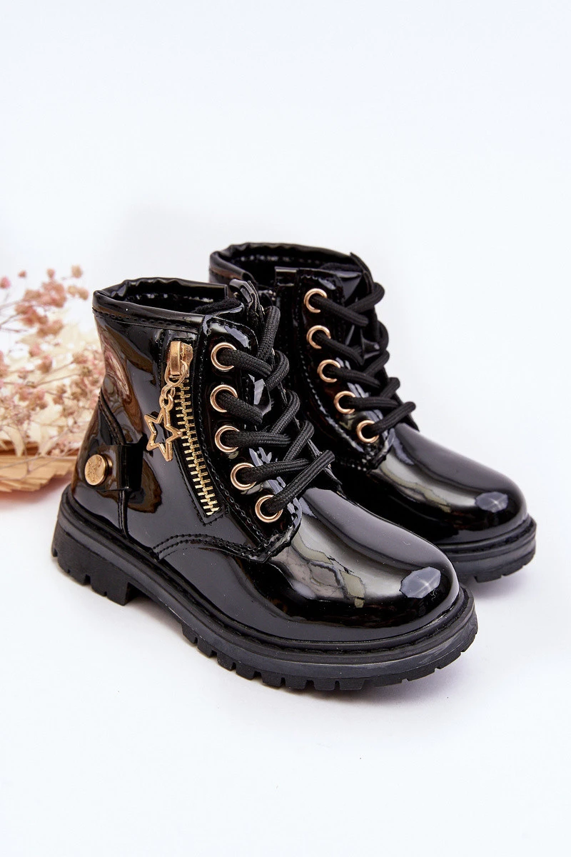 Dětské lakované botky na zip černé Felori