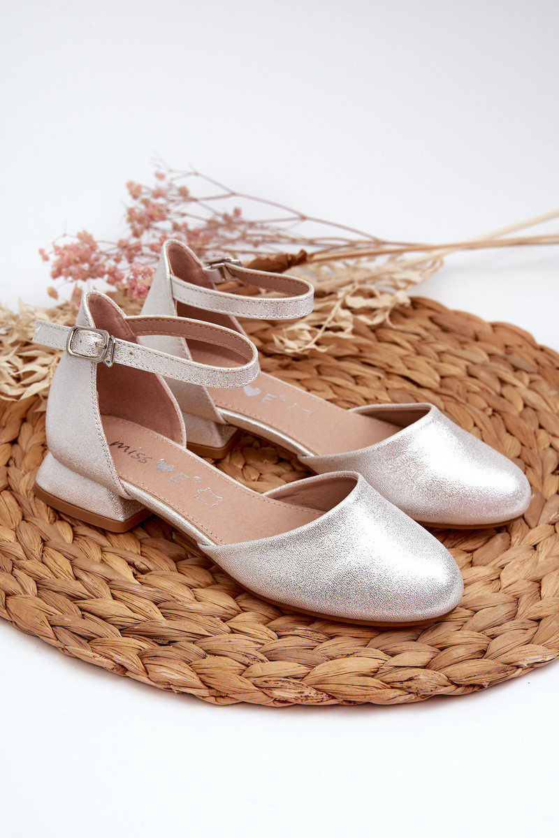 Krásné dívčí sandály ve formě lodiček na nízkém podpatku. Tento model je vyroben z ekokože. Sandály se zapínají na nastavitelný řemínek s přezkou. Navíc je patník zpevněný, což umožňuje správnou stabilizaci chodidla. Ideální obuv k šatům na důležitou událost např .: první svaté přijímání. Při výběru velikosti se řiďte tabulkou velikostí.