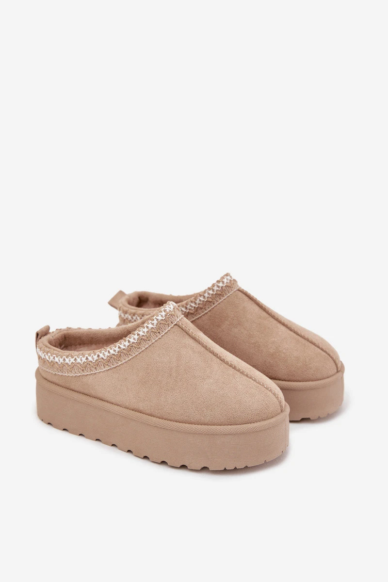 Dětské/módní sněhule s výšivkou na platformě Jolisse – béžové