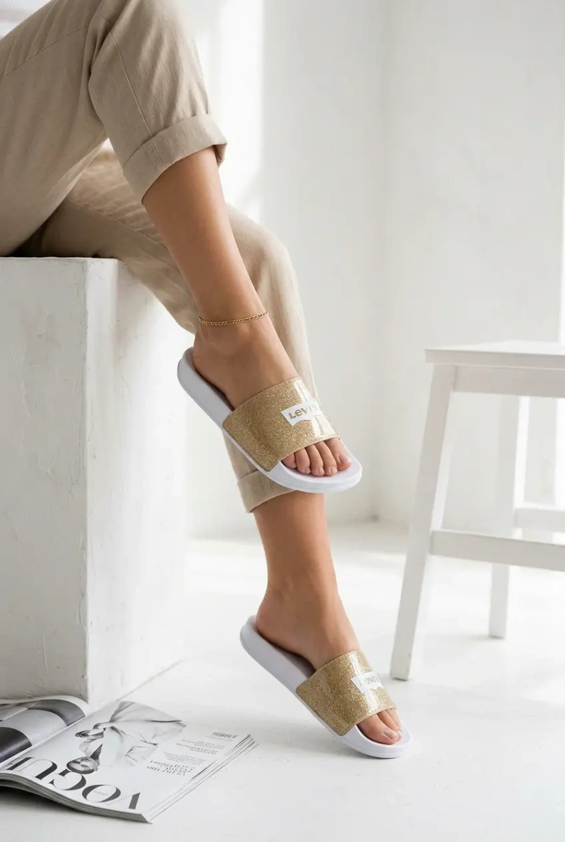 Dětské pantofle LEVI'S VPOL0251S-3923 Zlaté s brokátom
