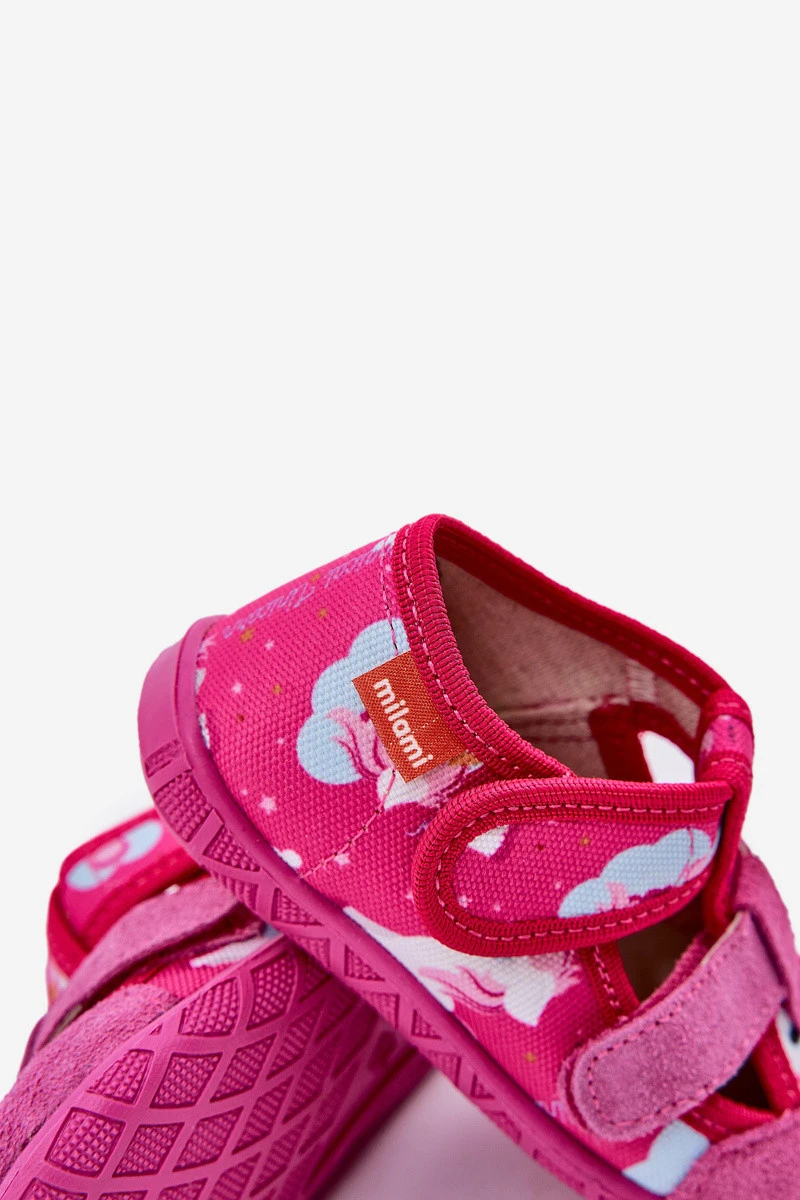 Dětské pantofle Milami na suchý zip s jednorožci fuchsie Reathiana