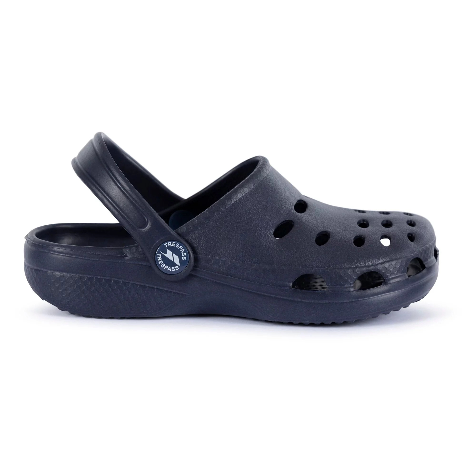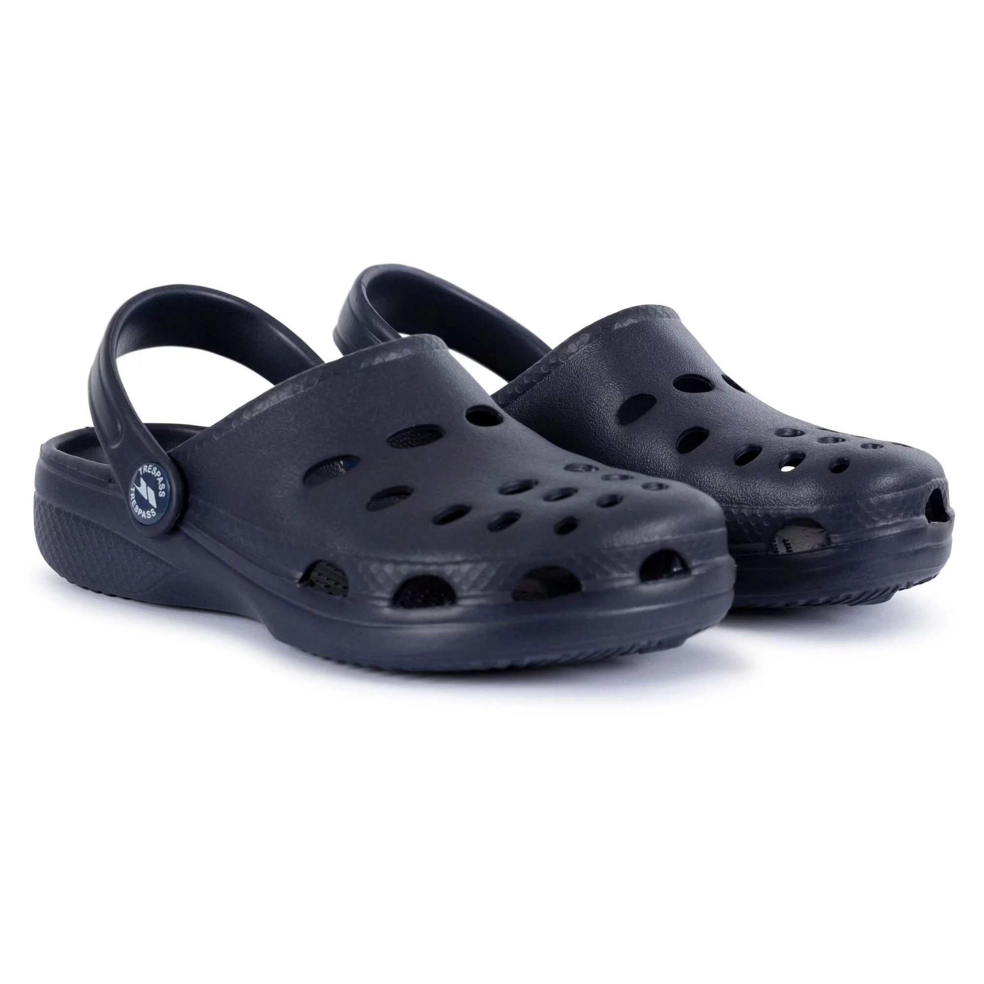 Dětské pantofle Trespass Dip s lehkou vahou, ventilačními otvory a páskou kolem achilovky pro skvělou fixaci.