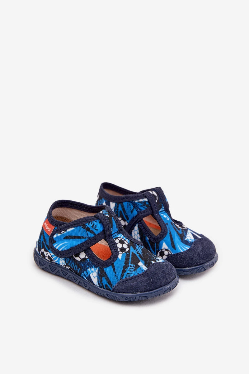 Dětské pantofle na suchý zip míčky tmavě modré model 21725234 - Milami