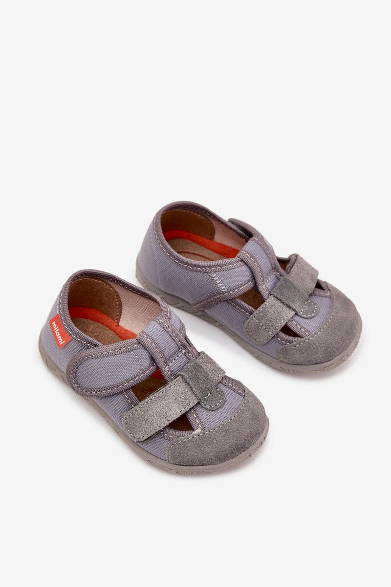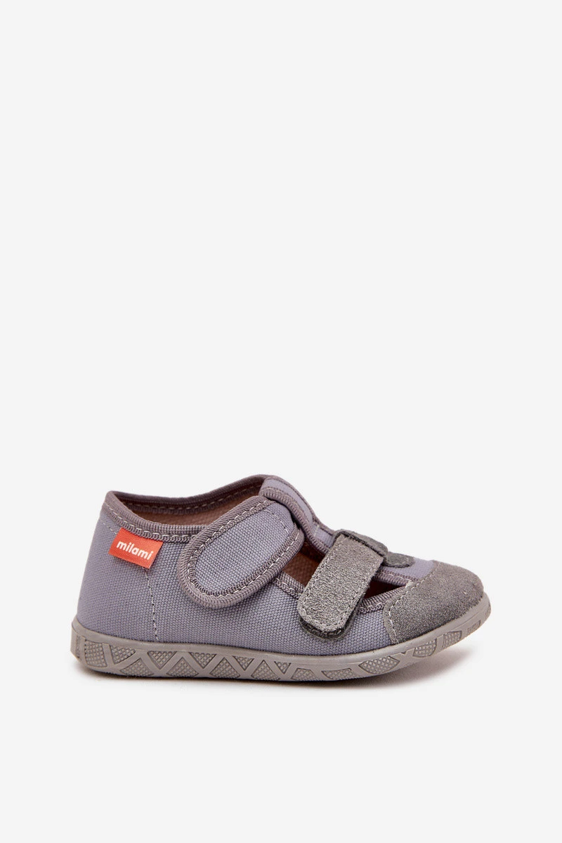 Dětské pantofle na suchý zip šedé model 21705429 - Milami