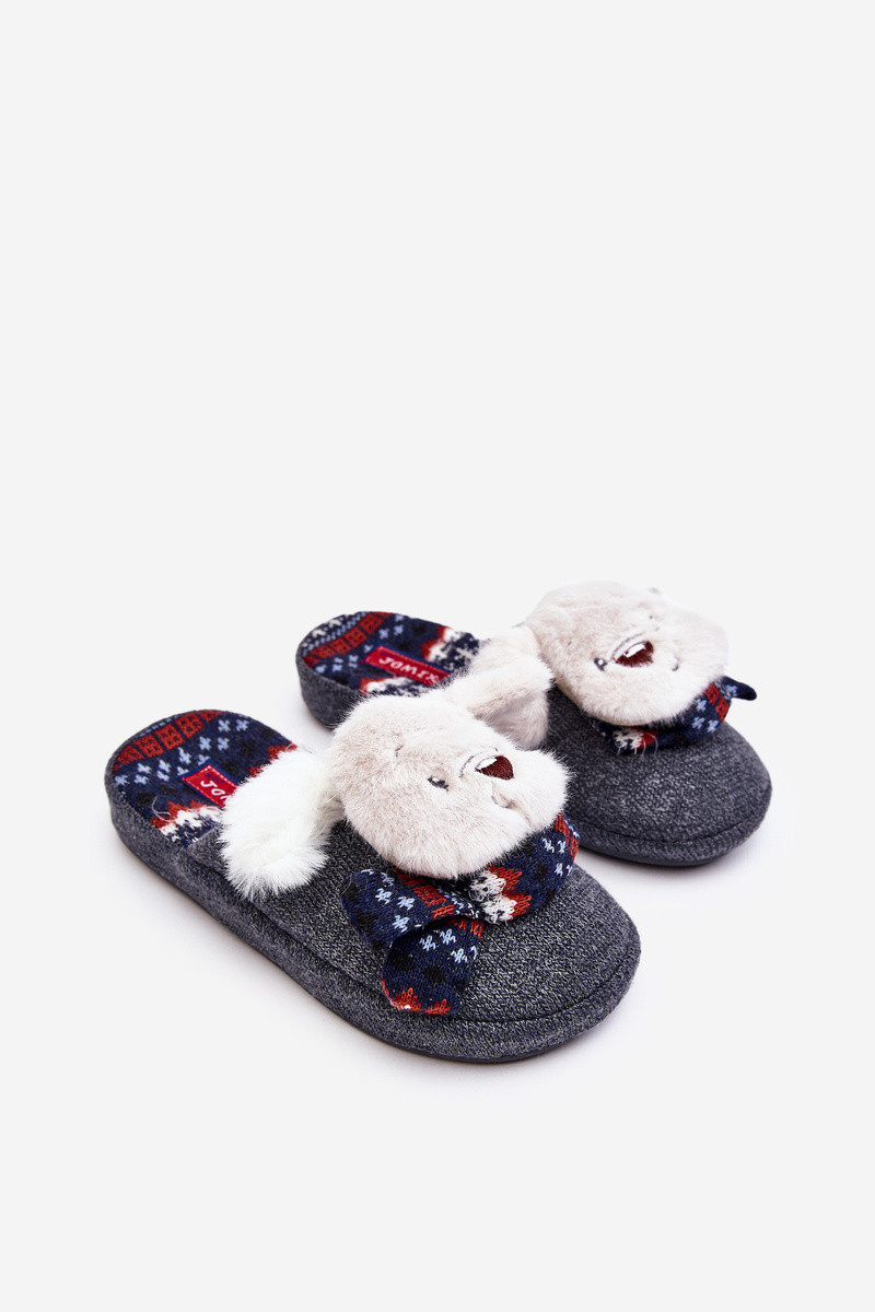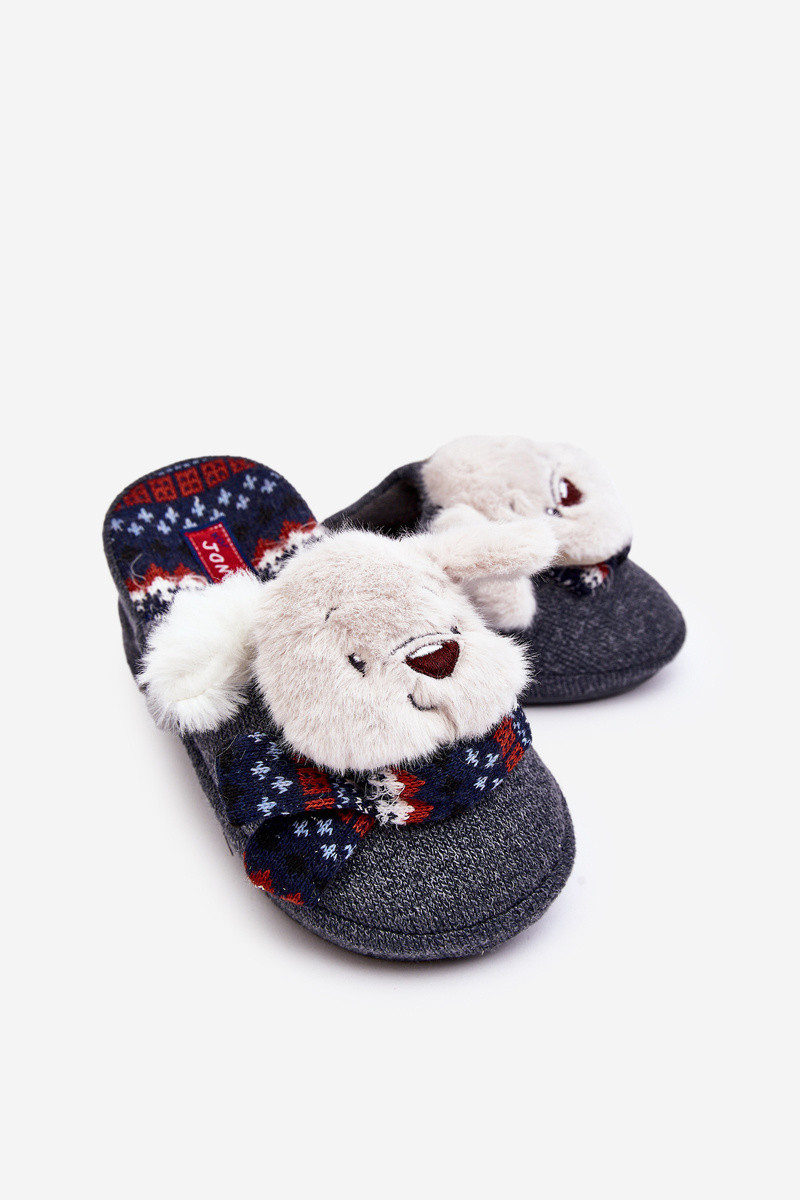 Dětské pantofle na tlusté podrážce se šedým medvídkem model 21641406 - Boto
