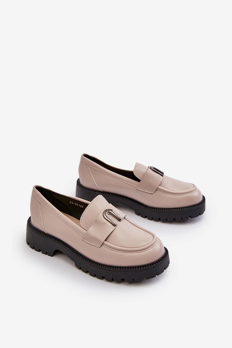 Dětské mokasíny vyrobené z ekologické kůže. Usazeny na ploché podpatku. Zaoblené špičky. Tento model má vložku z pravé kůže, která zajistí pohodlí během nošení. Vepředu na popruhu malá ozdoba. Ideální doplněk různých jarních stylizací! Při výběru velikosti se řiďte tabulkou velikostí.