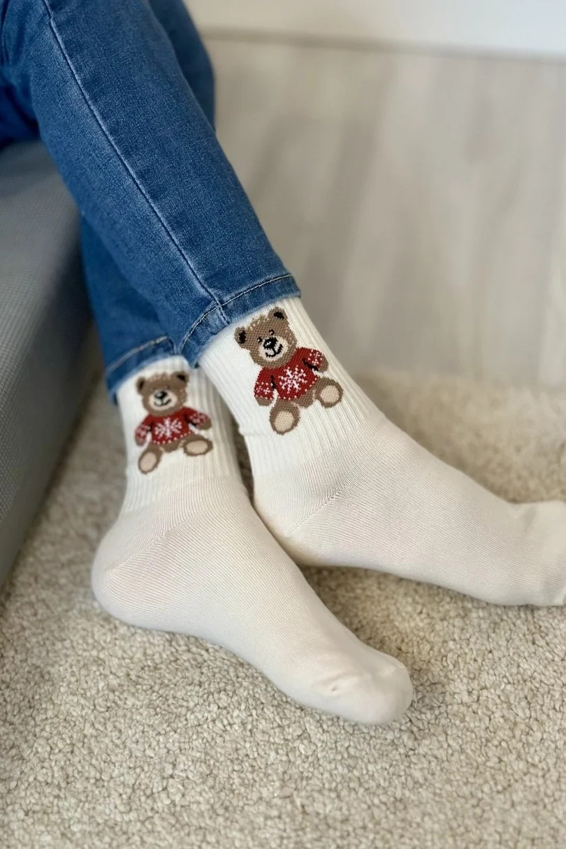 Bavlněné dětské ponožky s obrázkem medvídka v horní části pro lidi, kteří ocení pohodlí. Jsou ideální pro každodenní styling.