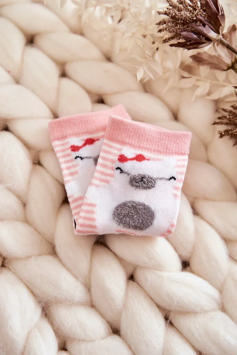 Dětské pruhované Ponožky S Medvídkem Růžove