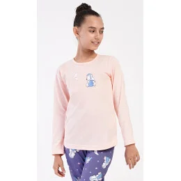 Dětské dlouhé bavlněné pyžamo Méďa s polštářem. Pyžamo se skládá z trika s dlouhým rukávem a dlouhých kalhot. Na triku s kulatým výstřihem je obrázek ledního medvídka s polštářem. Tento motiv se opakuje i na dlouhých kalhotách, které mají v pase gumu na stažení. Kalhoty nemají kapsy a jsou zakončeny lemy. Použitý bavlněný materiál je příjemný a poddajný na dotek.