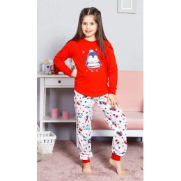 Dětské dlouhé bavlněné pyžamo Tučňák velký. Pyžamo tvoří triko s dlouhým rukávem a dlouhé kalhoty. Triko zdobí potisk tučňáčka. Dlouhé kalhoty mají v pase gumu, jsou potištěny zvířátky a ukončeny elastickými lemy. Bavlněný materiál je poddajný a jemný na dotek. Pyžamo je vhodné i na denní nošení.
