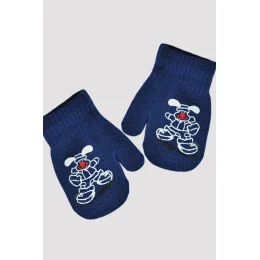 Dětské jednoprsté rukavice, podšitéójne, s aplikací, spojené šňůrkou.
