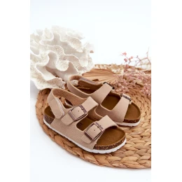 Dětské sandálky na korkové platformě se suchým zipem béžové model 21663958 - Boto