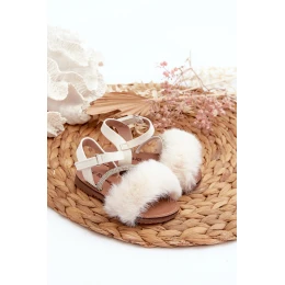 Dětské sandálky na suchý zip s kožíškem Bílé model 21663002 - Boto