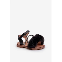 Dětské sandálky na suchý zip s kožíškem černé Rosavere