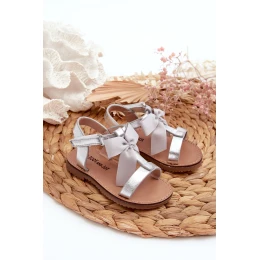 Dětské sandálky S Mašlí Na suchý zip Stříbrné model 21662850 - Boto
