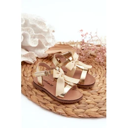 Dětské sandálky S Mašlí Na Suchý Zip Zlaté model 21662945 - Boto