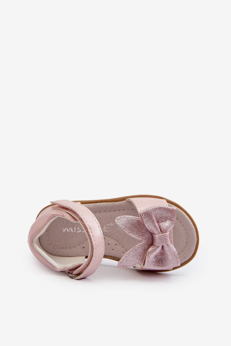 Dětské sandálky s mašlí, zapínání na suchý zip, růžové Wistala