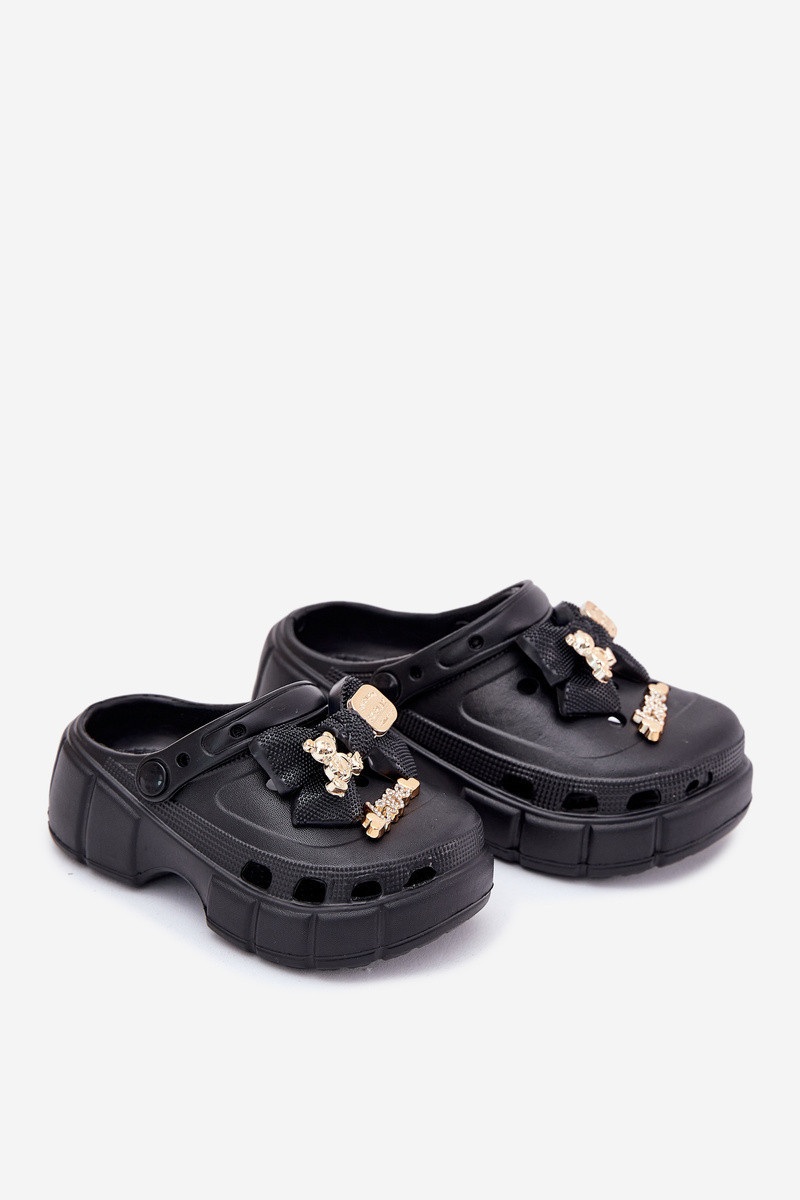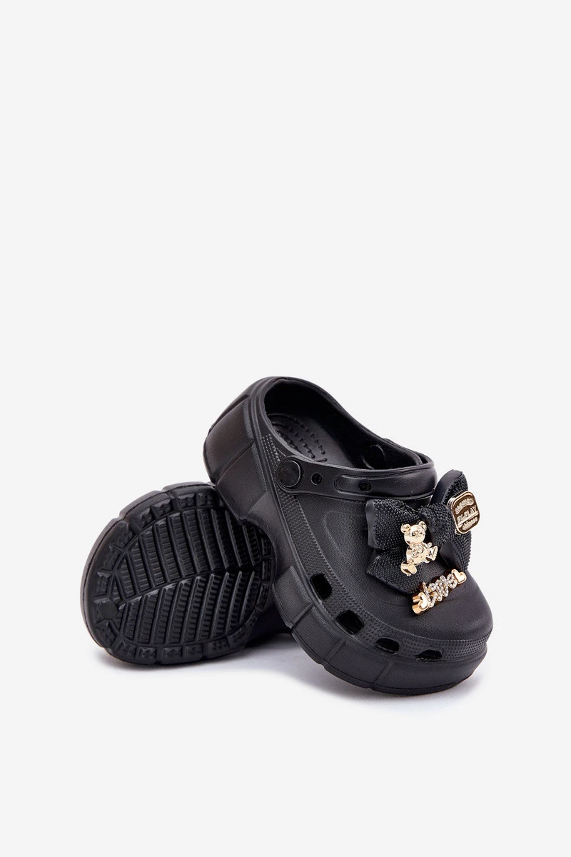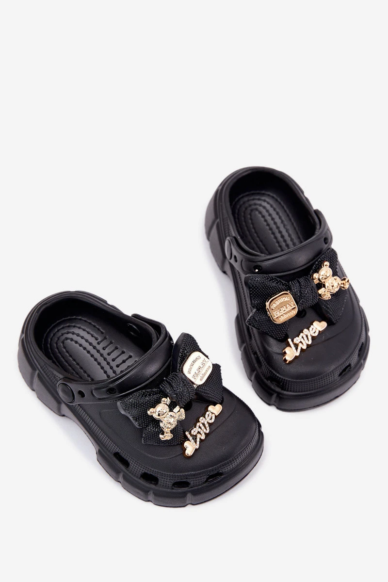 Dětské Sandály Dívčí Pěnové S Mašlí A Dekoracemi Černé Selvana
