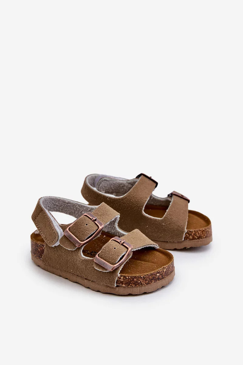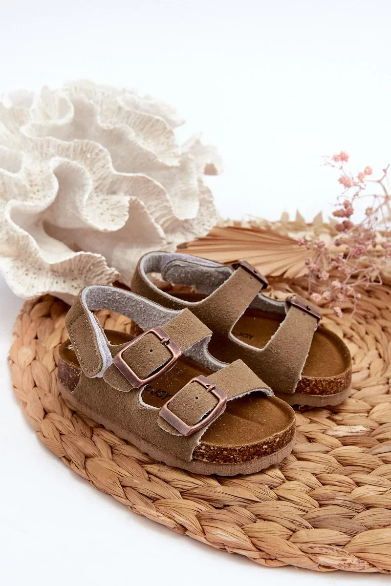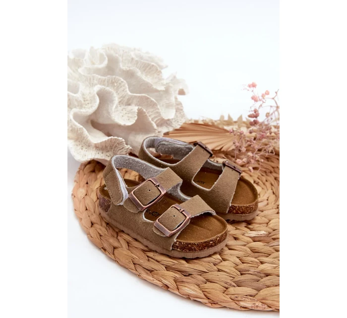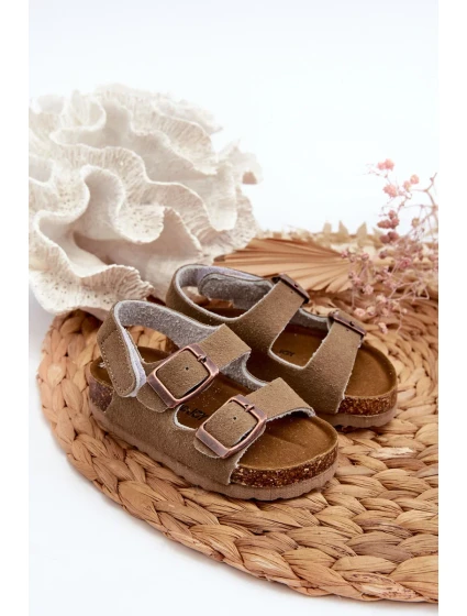 Dětské sandály na korkové platformě, zapínání na suchý zip, Khaki Rorria
