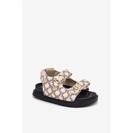 Dětské Sandály Na Suchý Zip Se Zlatými Detaily Béžové Cavina
